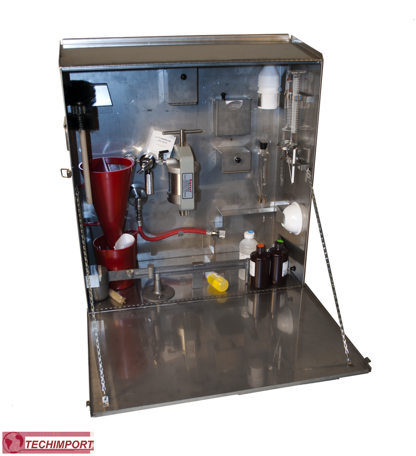 Rig Lab Model 821 contains the basic mud testing equipment required for routine mud checks by rig personnel. The Stainless Steel cabinet is designed for long life and easy maintenance.