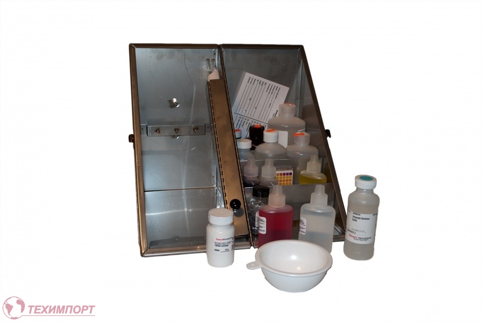 Данный набор содержит все необходимое оборудование и реагенты для проведения теста на предмет содержания хлоридов, определения щелочности, содержания сульфатов и жесткости по методу Versenate в соответствии со стандартом Американского института нефти API. Рекомендуемая Практика 13B-1.